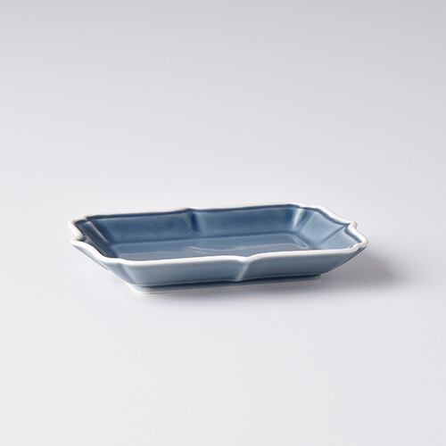 ルリ(淵白)デコ長角プレートS【波佐見焼き】612134547