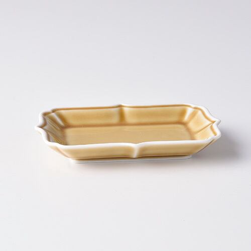 キャメル(淵白) デコ長角プレートS【波佐見焼き】612135547