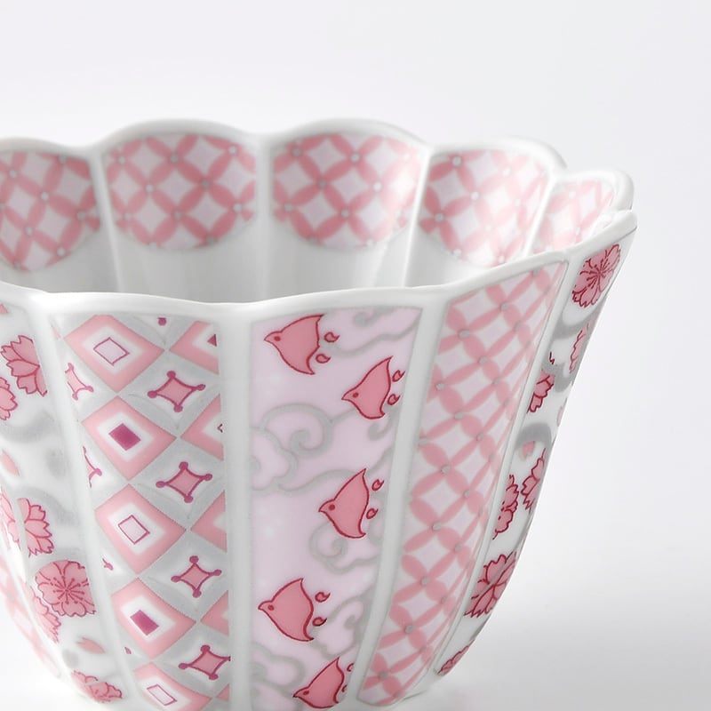 桜や千鳥、地紋などの日本の伝統文様を配した美しいデザインは、いにしえの高貴な離宮(宮殿)に伝わる格調高い意匠をイメージして作られました。